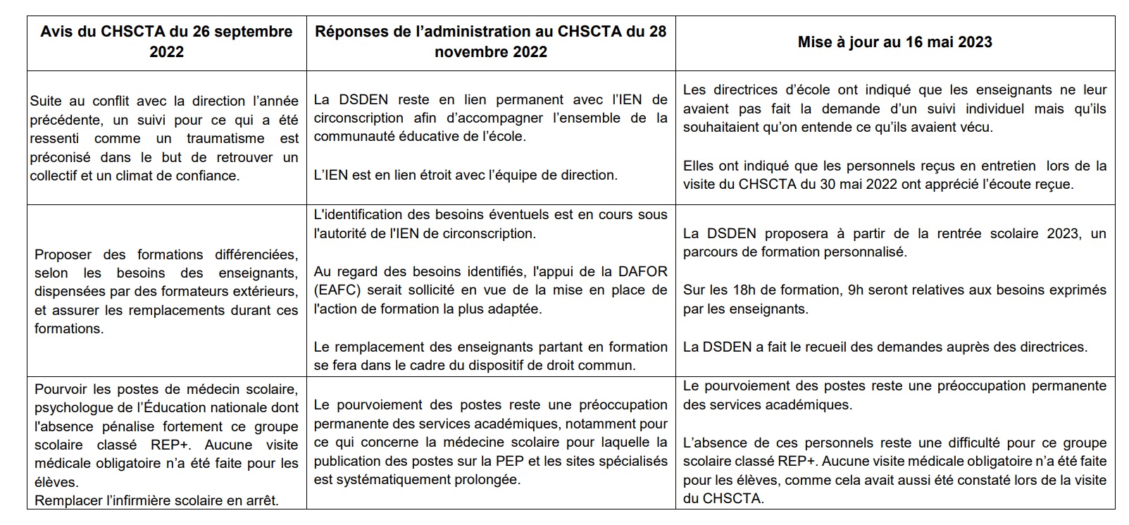 Voici les avis et réponses de l'administration.